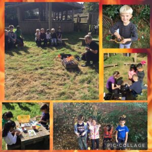 The children had a fantastic second week at Forest School. The children started the session learning about how the Great Fire of London started. Miss Lord demonstrated how quickly fire can spread by burning a row or paper houses – the children could not believe how fast it all went up in flames! The Year 2s then had the opportunity to work on their Forest School Skill of using a steel and flint and using loppers. The children utilised the mud kitchen to create ‘pies’ and ‘bread’ just like at pudding lane!