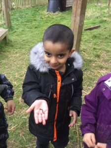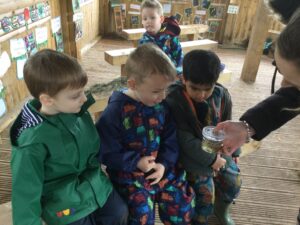 Minibeast hunting is a popular activity each week! This week the children were fascinated in watching a millipede that appeared to be asleep, then woke up and began actively walking around, tickling children’s hands as it moved about!