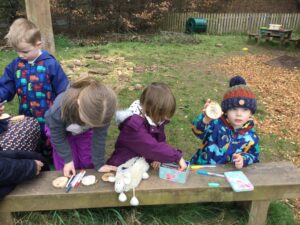 This week the Nursery children began by helping the Easter Bunny find lots of chocolate that had been dropped whilst passing through our Forest School!
