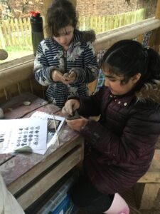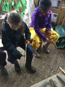 What a brilliant Forest School session Year 3 had today! Although it was extremely wet and muddy, the children enjoyed getting stuck into the Bronze Age activities. One group worked together as a team to create a fantastic Bronze Age roundhouse using wattle and daub. Another group learnt how to create a square lashing to hold sticks together, creating a frame. They then weaved wool and natural resources into the frame.
