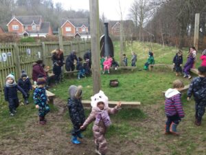 This week at Forest School, the Nursery children demonstrated that they were able to listen to, and follow safety instructions really well.  We began with a warm up game around the fire circle so that children could practice walking safely around it, rather than across it!  They were all brilliant and manoeuvred themselves with great care, especially with the ground still being so muddy!