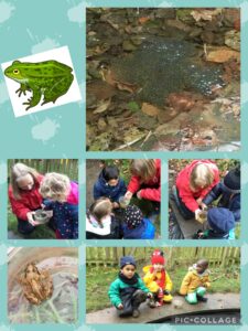 The excitement didn’t stop there!  We also noticed a great big clump of frogspawn in the pond and couldn’t wait to get a closer look!  Some children were really brave and had a little feel of it when Mrs Farrington collected some to show us!  We nearly stepped on two baby frogs hopping in the long grass, but Miss Walton helped to rescue them and placed them safely back near to the pond!
