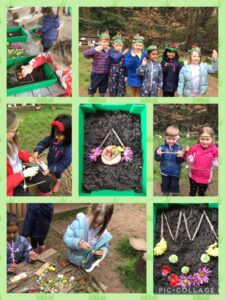 This week the children have had a wonderful time joining in with activities to celebrate the Kings Coronation. They used a variety of natural materials to create portraits of the King and created their own royal crowns.