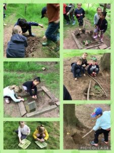 We were blessed with lovely sunny weather today! The children were reminded about being extra safe at forest school. They avoided the stingers and low branches and carried the big sticks carefully in pairs.