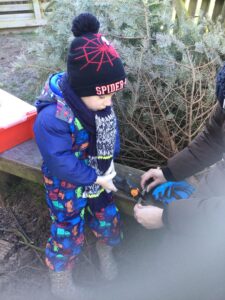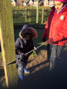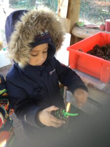 Year 1 have had a chilly and exciting afternoon at Forest School. This week they have learnt how to tie a Timber Hitch Knot and it was lovely to see the children practicing by tying the rope around the trees. The children continued using secateurs safely to cut sticks, which we will be using in next weeks session. The children used pinecones, pipe cleaners and googly eyes to make their own aliens as well as having a fun time exploring the area.