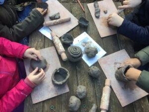 This week has been very creative! The children have made dens from natural materials and created a Roman pot from clay. The children have painted Mosaic patterns onto stones again this week which they have enjoyed. From the wood the children cut, they have made a Roman clock using nails and elastic bands.