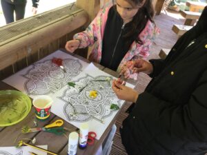 Not only that but the children were also given the challenge of creating Arabesque, geometric-designed magic carpets, using natural materials they could find in the Forest School area. The children thoroughly enjoyed being able to create these with their friends.