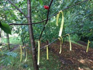 Year 2 have had a wet and rainy week in forest school. They have enjoyed exploring the fire of London through forest school by re-enacting Pudding Lane Bakery in a mud kitchen. They have also enjoyed creating a sculpture out of a tree and ribbon to resemble a fire. They used their new knot to help tie the ribbon on to the tree. This is going to really make a memorable mark as it will remain there for other classes to see. Well done year 2!